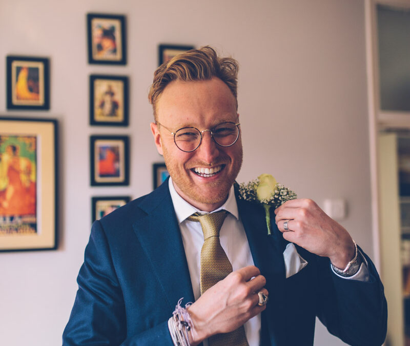 Best man affixing button hole