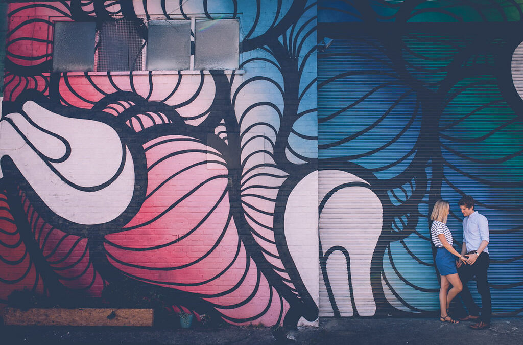 Couple against graffiti wall